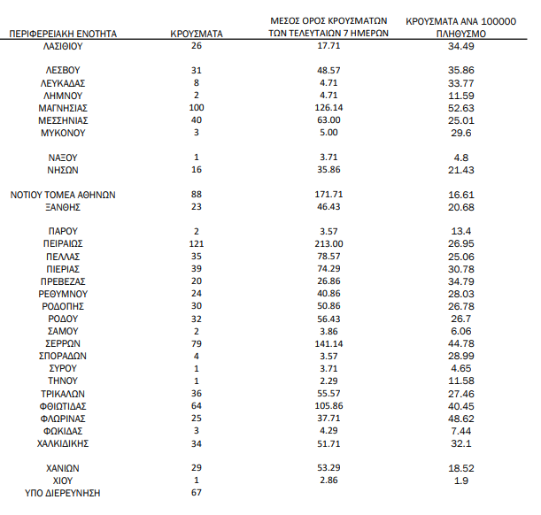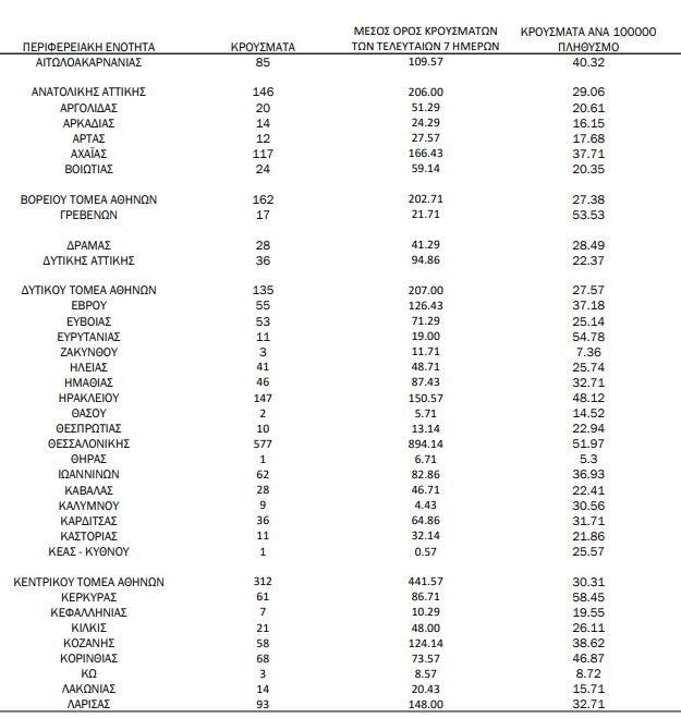 Η γεωγραφική κατανομή των νέων κρουσμάτων: