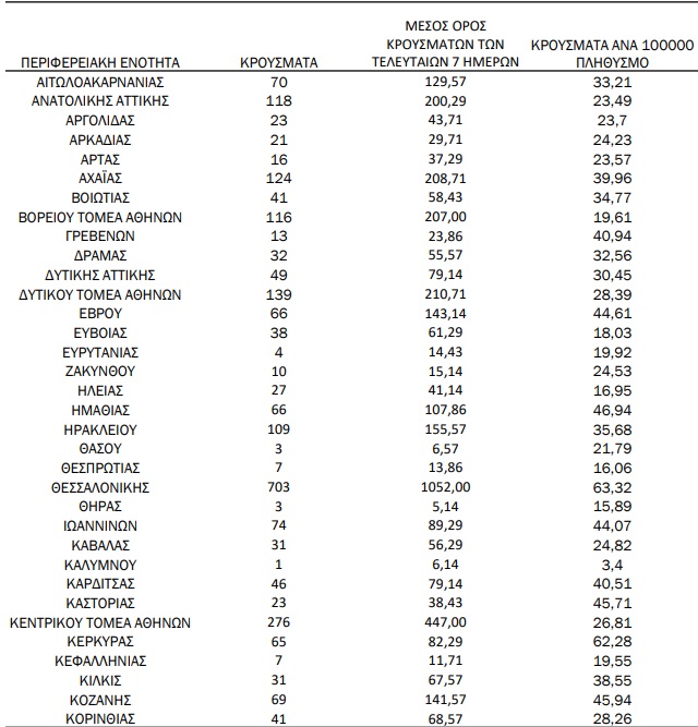 Τα νέα κρούσματα κορωνοϊού σήμερα Κυριακή 28 Νοεμβρίου ανακοίνωσε ο ΕΟΔΥ.