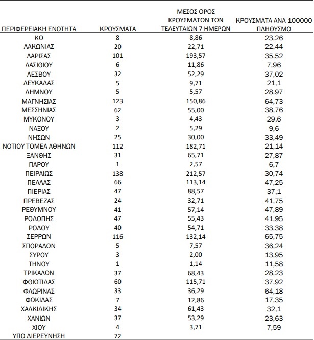 Σύμφωνα με την ενημέρωση, κατά το τελευταίο 24ωρο στην Ελλάδα καταγράφονται 96 νέοι θάνατοι, ενώ στις ΜΕΘ της χώρας νοσηλεύονται 647 διασωληνωμένοι ασθενείς. Καταγράφηκαν συνολικά 3.823 νέα κρούσματα.