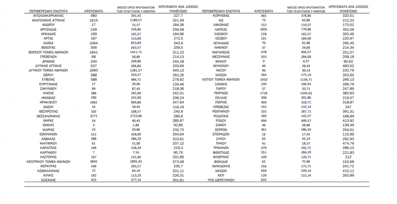 Με βάση τα επιβεβαιωμένα κρούσματα των τελευταίων 7 ημερών, 624 θεωρούνται σχετιζόμενα με ταξίδι από το εξωτερικό και 1.952 είναι σχετιζόμενα με ήδη γνωστό κρούσμα.