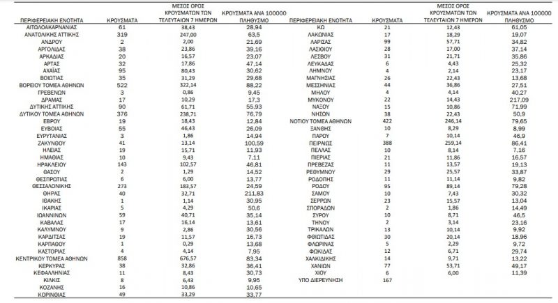 Τα νέα εργαστηριακά επιβεβαιωμένα κρούσματα της νόσου(άτομα) που καταγράφηκαν τις τελευταίες 24 ώρες ήταν 4.496. Ο συνολικός αριθμός των ατόμων που νόσησαν ανέρχεται σε 3.483.275 (ημερήσια μεταβολή +0.1%), εκ των οποίων 48.8% άνδρες.