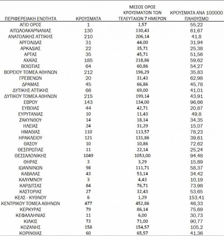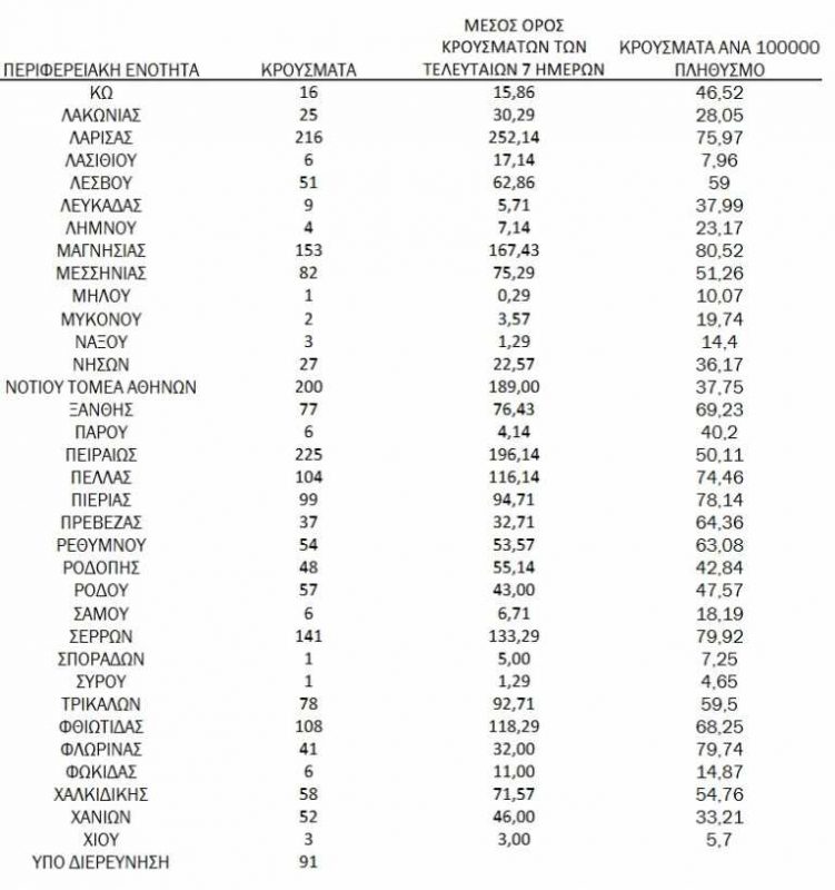 Ανακοινώθηκαν από τον ΕΟΔΥ σήμερα, Σάββατο 20 Νοεμβρίου 2021, 5.991 νέα κρούσματα κορονοϊού στη χώρα μας, εκ των οποίων 4 εντοπίστηκαν κατόπιν ελέγχων στις πύλες εισόδου της χώρας.