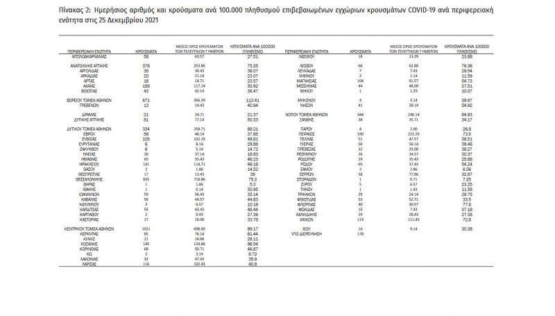 ΕΛΛΑΔΑ • ΚΟΡΩΝΟΪΟΣ - ΣΥΝΕΧΗΣ ΕΝΗΜΕΡΩΣΗ Κορωνοϊός: 6.590 νέα κρούσματα, 58 θάνατοι, 617 οι διασωληνωμένοι (Τα κρούσματα ανά Νομό) 25 Δεκεμβρίου 2021 18:02 .Coronavirus. Corona virus concept. Italy put mask to fight against Corona virus. Concept of fight against virus Μοιραστείτε αυτό! Facebook Twitter Google Plus Pinterest LinkedIn Σε 6.590 ανήλθαν τα νέα κρούσματα κορωνοϊού στην Ελλάδα, όπως ανακοίνωσε ο ΕΟΔΥ. Οι νέοι θάνατοι είναι 58. Στους 617 ανήλθαν οι διασωληνωμένοι. Tα κρούσματα ανά νομό: μπορεί να σου αρέσει επίσης ΕΛΛΑΔΑ ΓΣEE: Τι ισχύει για τους εργαζόμενους σε συνθήκες κακοκαιρίας 5 Δεκεμβρίου 2025 ΕΛΛΑΔΑ • ΟΙΚΟΝΟΜΙΑ ΕΛΣΤΑΤ: Στο 2% η ανάπτυξη της ελληνικής οικονομίας κατά το τρίτο τρίμηνο του έτους 5 Δεκεμβρίου 2025 ΕΛΛΑΔΑ • ΟΙΚΟΝΟΜΙΑ Aνακήρυξη της Πειραιώς ως η «Καλύτερη Τράπεζα στην Ελλάδα» στα Bank of the Year Awards 2025 5 Δεκεμβρίου 2025 Kρήτη: 299 νέα κρούσματα κορωνοϊού – Τα κρούσματα ανά Νομό Κρήτη: Πρόστιμο και σε γραφείο τελετών για μη τήρηση των μέτρων Μοιραστείτε αυτό! Facebook Twitter Google Plus Pinterest LinkedIn ΡΟΗ ΕΙΔΗΣΕΩΝ ΕΛΛΑΔΑ ΓΣEE: Τι ισχύει για τους εργαζόμενους σε συνθήκες κακοκαιρίας 5 Δεκεμβρίου 2025 12:57 ΕΛΛΑΔΑ • ΟΙΚΟΝΟΜΙΑ ΕΛΣΤΑΤ: Στο 2% η ανάπτυξη της ελληνικής οικονομίας κατά το τρίτο τρίμηνο του έτους 5 Δεκεμβρίου 2025 12:43 ΕΛΛΑΔΑ • ΟΙΚΟΝΟΜΙΑ Aνακήρυξη της Πειραιώς ως η «Καλύτερη Τράπεζα στην Ελλάδα» στα Bank of the Year Awards 2025 5 Δεκεμβρίου 2025 12:35 ΚΡΗΤΗ Kρήτη: Δε στάθηκε εμπόδιο η βροχή στο συλλαλητήριο των συνταξιούχων 5 Δεκεμβρίου 2025 12:28 ΑΓΡΟΤΙΚΑ • ΚΡΗΤΗ Kρήτη: Κλειστά τη Δευτέρα λιμάνια, αεροδρόμια και δημόσιες υπηρεσίες μετά την ακύρωση της συνάντησης με τον Κωστή Χατζηδάκη 5 Δεκεμβρίου 2025 12:10 ΕΝΔΙΑΦΕΡΟΝΤΑ Oι ιδανικές ώρες για να αερίσουμε το σπίτι το Χειμώνα – Ποιες πρέπει να αποφεύγουμε 5 Δεκεμβρίου 2025 11:51 ΑΘΛΗΤΙΚΑ Μουντιάλ: Απόψε η κλήρωση των ομίλων της τελικής φάσης – Πότε ξεκινάει 5 Δεκεμβρίου 2025 11:35 ΚΡΗΤΗ Kρήτη: Νέες προσλήψεις ψυχιάτρων – Ανακοινώθηκαν 19 θέσεις στην 7η ΥΠΕ 5 Δεκεμβρίου 2025 11:01 ΑΘΛΗΤΙΚΑ Euroleague: Αναβλήθηκε το πολυαναμενόμενο χθεσινό ματς Ολυμπιακός-Φενερμπαχτσέ λόγω κακοκαιρίας 5 Δεκεμβρίου 2025 10:34 ΚΡΗΤΗ Kρήτη: Στο εδώλιο σήμερα το ζευγάρι για την κακοποίηση των 8 παιδιών τους – Οι κατηγορίες (βίντεο) 5 Δεκεμβρίου 2025 10:15 ΟΙΚΟΝΟΜΙΑ Επίδομα Θέρμανσης: Τέλος χρόνου για τις αιτήσεις – Κλείνει σήμερα η πλατφόρμα 5 Δεκεμβρίου 2025 09:56 Γεύση - Ψυχαγωγία Τα Ζώδια της ημέρας 5 Δεκεμβρίου 2025 09:53 ΚΡΗΤΗ Η παραμυθένια ιστορία της “Σκίας” – Μια αδέσποτη σκυλίτσα από την Κρήτη, σε μία ζεστή οικογένεια στη Φινλανδία (βίντεο) 5 Δεκεμβρίου 2025 09:34 ΑΓΡΟΤΙΚΑ • ΚΡΗΤΗ Kρήτη: Κάλεσμα των αγροτών προς τους παραγωγούς να δώσουν δυναμικό «παρών» στις κινητοποιήσεις – Την Δευτέρα οι αποφάσεις για νέες δράσεις 5 Δεκεμβρίου 2025 09:18 ΚΡΗΤΗ • Νομός Χανίων ΔΕΔΔΗΕ: Διακοπές ρεύματος σε περιοχές της Κρήτης σήμερα, Παρασκευή 05 Δεκεμβρίου 5 Δεκεμβρίου 2025 09:10 Δημοφιλή αυτή την εβδομάδα