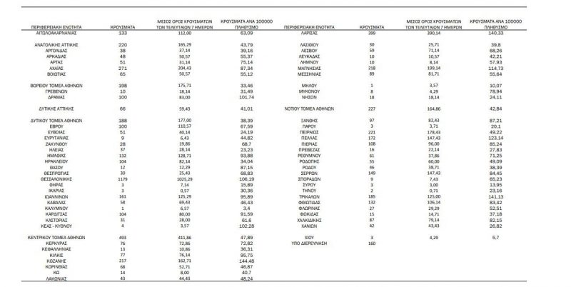 Κορωνοϊός: 7.105 κρούσματα – Στους 489 οι διασωληνωμένοι, 70 νέοι θάνατοι (Τα κρούσματα ανά Νομό)