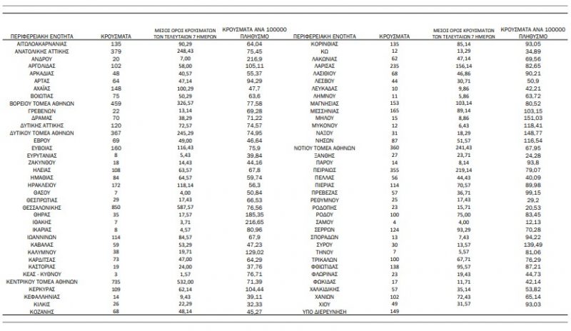 Τα νέα εργαστηριακά επιβεβαιωμένα κρούσματα της νόσου(άτομα) που καταγράφηκαν τις τελευταίες 48 ώρες ήταν 7.580. Ο συνολικός αριθμός των ατόμων που νόσησαν ανέρχεται σε 3.309.962 (ημερήσια μεταβολή +0.2%), εκ των οποίων 48.9% άνδρες.