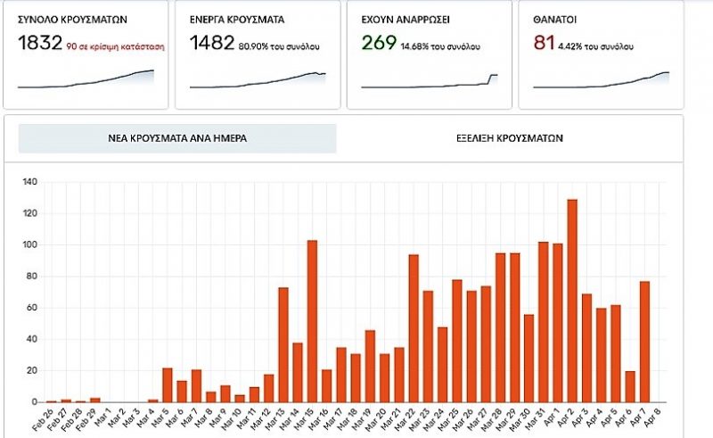 Υπενθυμίζουμε ότι μέχρι την Τρίτη η εικόνα του Covid-19 στη χώρα μας έχει ως εξής:
