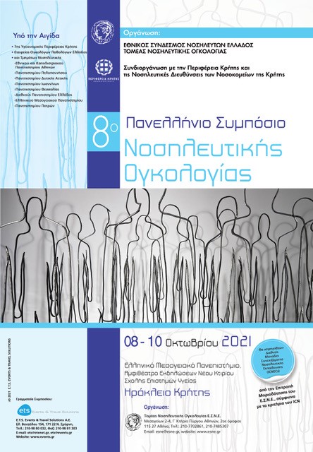 Με τη συνδιοργάνωση της Περιφέρειας Κρήτης και των Νοσηλευτικών Διευθύνσεων των Νοσοκομείων της Κρήτης, ο Τομέας Νοσηλευτικής Ογκολογίας του Εθνικού Συνδέσμου Νοσηλευτών Ελλάδος διοργανώνει το 8ο Πανελλήνιο Συμπόσιο Νοσηλευτικής Ογκολογίας από 8 έως 10 Οκτωβρίου 2021, στο Ηράκλειο της Κρήτης.