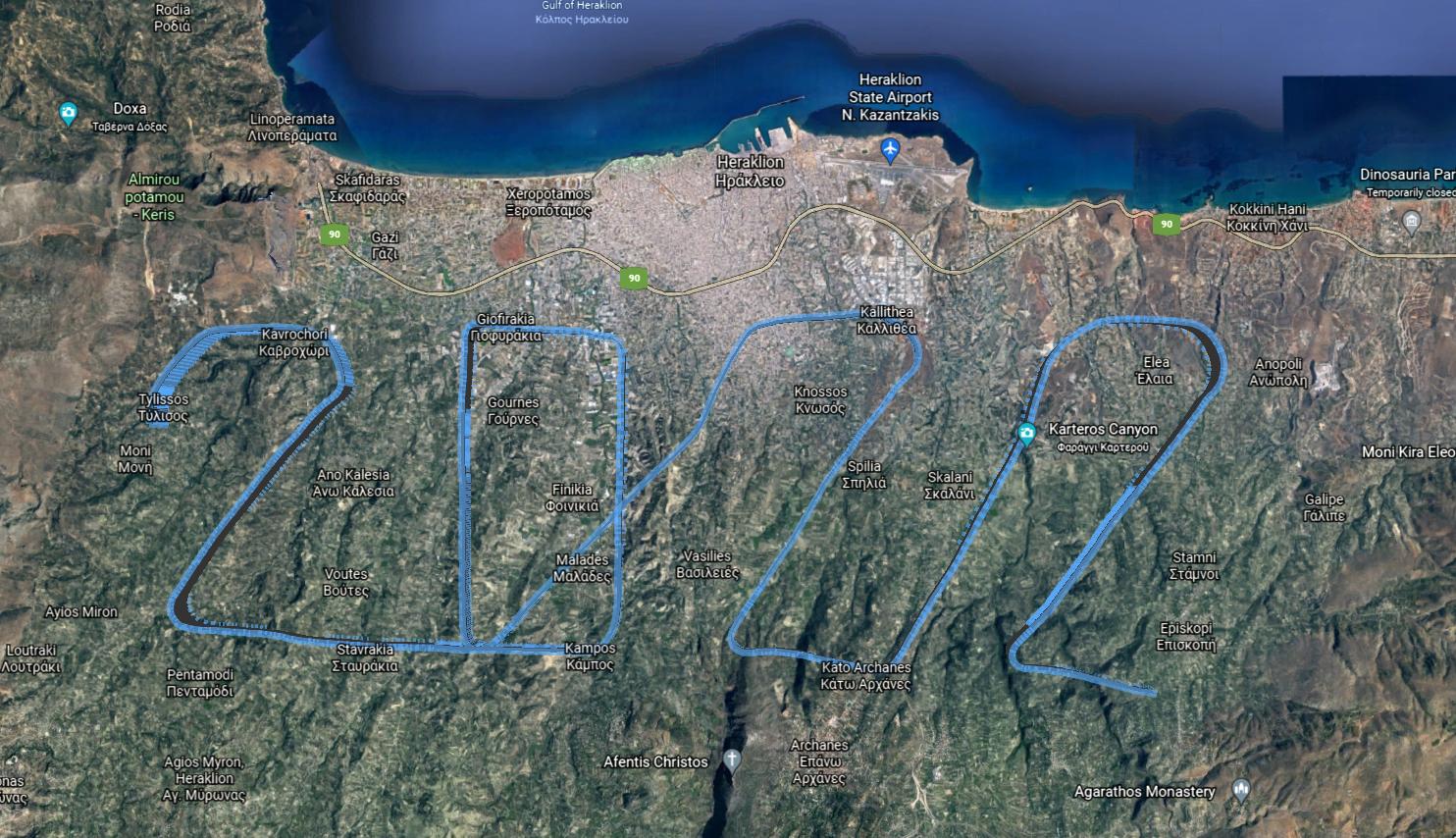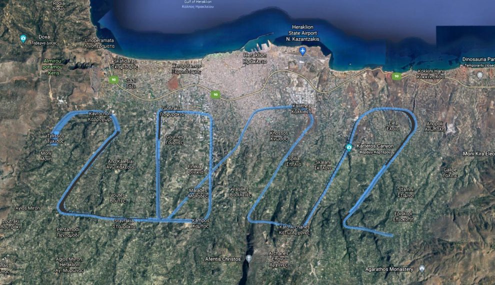 Με μια αέρινη πινελιά στον Κρητικό ουρανό καλωσορίζουν τον νέο χρόνο τα μέλη της Αερολέσχης Ηρακλείου. Σε πτήση που έκαναν χθες σε ύψος 3500 ποδιών πάνω από το νομό Ηρακλείου, το πλήρωμα ενός μονοκινητήριου αεροσκάφους σχημάτισε τον αριθμό 2022 με το ίχνος που άφησε πίσω του το αεροσκάφος.