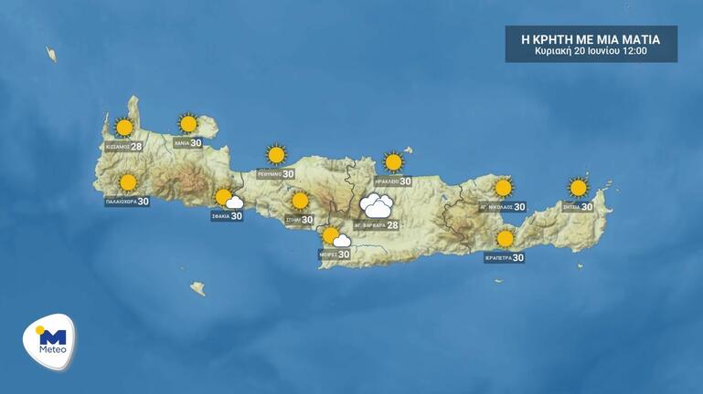 Γενικά αίθριο καιρό στην Κρήτη προβλέπουν για την Κυριακή οι μετεωρολόγοι. Μόνο τις μεσημβρινές και απογευματινές ώρες ενδέχεται να αναπτυχθούν τοπικές νεφώσεις και πιθανόν να εκδηλωθούν σποραδικές βροχές στα ορεινά του νησιού.