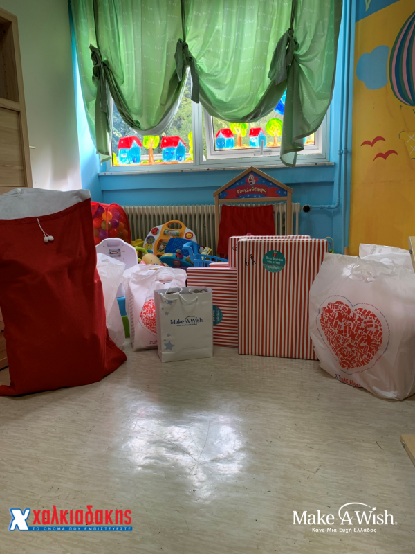 Το Make-A-Wish Ελλάδος πιστό στις αξίες του, βρέθηκε κοντά στα παιδιά της κλινικής, ώστε να στηρίξει εκείνα και τις οικογένειές τους, αυτές τις όμορφες Χριστουγεννιάτικες ημέρες και να πάρουν δύναμη για τον καθημερινό τους αγώνα. Στο πλευρό του, σύμμαχοι, τα Supermarket ΧΑΛΚΙΑΔΑΚΗΣ που προσέφερε όλα τα δώρα των παιδιών.