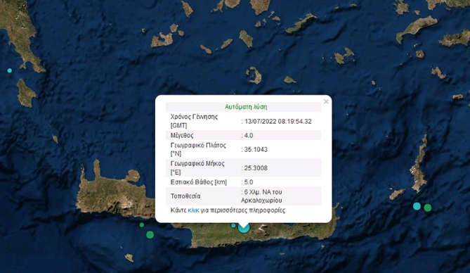 ΚΡΗΤΗ • ΝΕΟΙ ΟΡΙΖΟΝΤΕΣ Κρήτη: Δυνατός σεισμός πριν από λίγο… 13 Ιουλίου 2022 10:29 Μοιραστείτε αυτό! Facebook Twitter Google Plus Pinterest LinkedIn Σεισμός 4 Ρίχτερ σημειώθηκε πριν λίγα λεπτά στο Αρκαλοχώρι του Ηρακλείου Κρήτης. Σύμφωνα με το Γεωδυναμικό Ινστιτούτο το επίκεντρο ήταν 6 χλμ νοτιοανατολικά της Αρκαλοχωρίου και η δόνηση ήταν επιφανειακή με εστιακό βάθος μόλις 5 χλμ. μπορεί να σου αρέσει επίσης ΑΓΡΟΤΙΚΑ • ΚΡΗΤΗ Σταύρος Αρναουτάκης: «Η Κρήτη μεγάλη χαμένη της νέας ΚΑΠ. Αναγκαίος ο άμεσος εξορθολογισμός των πόρων» 5 Δεκεμβρίου 2025 ΕΛΛΑΔΑ • ΕΝΔΙΑΦΕΡΟΝΤΑ Social Media: Πού κάνουν «like» οι Έλληνες; 5 Δεκεμβρίου 2025 ΚΡΗΤΗ Ώρα για μπριτζ! Οι καλύτεροι αθλητές όλης της Ελλάδας δίνουν ραντεβού στην Κρήτη! 5 Δεκεμβρίου 2025 Κρήτη: Αυξημένα τα κρούσματα – Τι έδειξαν τα rapid test Κρήτη: Έρχεται ο ” ΠΙΝΟΚΙΟ ” Μοιραστείτε αυτό! Facebook Twitter Google Plus Pinterest LinkedIn ΡΟΗ ΕΙΔΗΣΕΩΝ ΑΓΡΟΤΙΚΑ • ΚΡΗΤΗ Σταύρος Αρναουτάκης: «Η Κρήτη μεγάλη χαμένη της νέας ΚΑΠ. Αναγκαίος ο άμεσος εξορθολογισμός των πόρων» 5 Δεκεμβρίου 2025 18:39 ΕΛΛΑΔΑ • ΕΝΔΙΑΦΕΡΟΝΤΑ Social Media: Πού κάνουν «like» οι Έλληνες; 5 Δεκεμβρίου 2025 18:37 ΚΡΗΤΗ Ώρα για μπριτζ! Οι καλύτεροι αθλητές όλης της Ελλάδας δίνουν ραντεβού στην Κρήτη! 5 Δεκεμβρίου 2025 18:35 ΕΛΛΑΔΑ • ΠΟΛΙΤΙΚΗ Δίκη Βαλυράκη: «Τον χτύπησαν με κοντάρι και τον άφησαν στη θάλασσα», κατέθεσε αυτόπτης μάρτυρας 5 Δεκεμβρίου 2025 18:28 ΠΟΛΙΤΙΚΗ Πολάκης για την παρουσίαση του βιβλίου Τσίπρα: «Έχω υψοφοβία από τα θεωρεία» 5 Δεκεμβρίου 2025 17:16 ΚΡΗΤΗ • ΤΟΥΡΙΣΜΟΣ Κρήτη: Θεαματικές οι προκρατήσεις αλλά κρατούν “μικρό καλάθι” οι τουριστικοί φορείς 5 Δεκεμβρίου 2025 17:13 Δήμος Κισάμου • ΠΑΙΔΕΙΑ - ΕΚΠΑΙΔΕΥΣΗ Κίσαμος: Διαδραστικό εργαστήριο «Ζογκλερικά Αλλιώς» με τον Circus Camino στην Ποταμίδα 5 Δεκεμβρίου 2025 14:19 ΕΛΛΑΔΑ • ΚΡΗΤΗ Νέο Έκτακτο Δελτίο Επιδείνωσης Καιρού – Η εικόνα στην Κρήτη 5 Δεκεμβρίου 2025 13:16 Νομός Χανίων Χανιά: Η Δημοτική Βιβλιοθήκη εκπροσώπησε την Ελλάδα στο διεθνές πρόγραμμα «Βιώσιμες Βιβλιοθήκες» του Goethe-Institut στη Βαρσοβία 5 Δεκεμβρίου 2025 13:10 Νομός Χανίων Χανιά: Χωρίς προβλήματα η κακοκαιρία Byron – Προειδοποίηση για νέα επιδείνωση 5 Δεκεμβρίου 2025 13:09 ΕΛΛΑΔΑ ΓΣEE: Τι ισχύει για τους εργαζόμενους σε συνθήκες κακοκαιρίας 5 Δεκεμβρίου 2025 12:57 ΕΛΛΑΔΑ • ΟΙΚΟΝΟΜΙΑ ΕΛΣΤΑΤ: Στο 2% η ανάπτυξη της ελληνικής οικονομίας κατά το τρίτο τρίμηνο του έτους 5 Δεκεμβρίου 2025 12:43 ΕΛΛΑΔΑ • ΟΙΚΟΝΟΜΙΑ Aνακήρυξη της Πειραιώς ως η «Καλύτερη Τράπεζα στην Ελλάδα» στα Bank of the Year Awards 2025 5 Δεκεμβρίου 2025 12:35 ΚΡΗΤΗ Kρήτη: Δε στάθηκε εμπόδιο η βροχή στο συλλαλητήριο των συνταξιούχων 5 Δεκεμβρίου 2025 12:28 ΑΓΡΟΤΙΚΑ • ΚΡΗΤΗ Kρήτη: Κλειστά τη Δευτέρα λιμάνια, αεροδρόμια και δημόσιες υπηρεσίες μετά την ακύρωση της συνάντησης με τον Κωστή Χατζηδάκη 5 Δεκεμβρίου 2025 12:10 Δημοφιλή αυτή την εβδομάδα