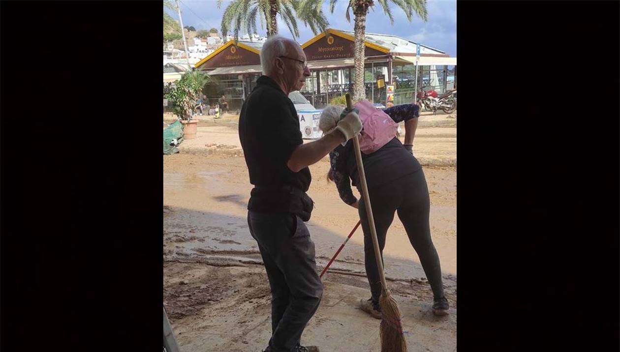 Στη φωτογραφία που δημοσιεύτηκε από το Sitia on line φαίνονται με σκούπες και γάντια στα χέρια να προσπαθούν να απομακρύνουν τις λάσπες.