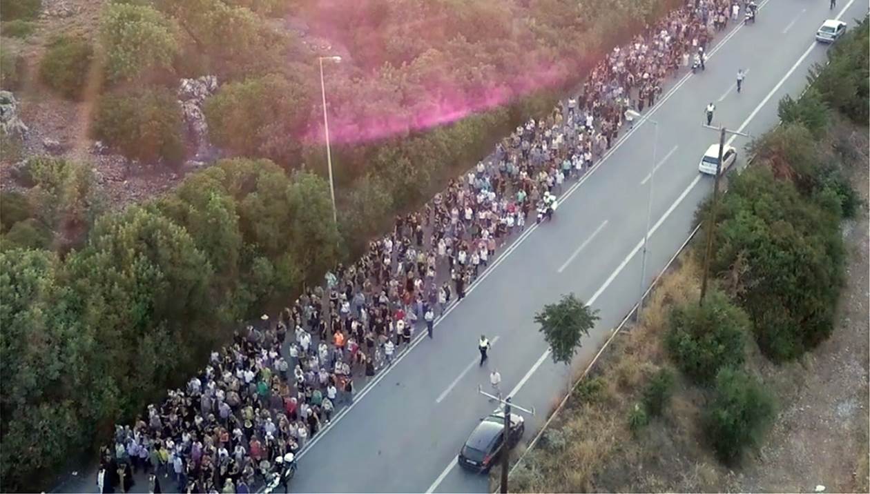 Εκατοντάδες πιστοί, όπως κάθε χρόνο, συμμετείχαν στη λιτανευτική πομπή με την εικόνα να είναι εντυπωσιακή, ενώ κατά μήκος της εθνικής υπήρχαν άντρες της Τροχαίας καθώς πρόκειται για εξαιρετικά επικίνδυνο σημείο του οδικού δικτύου.