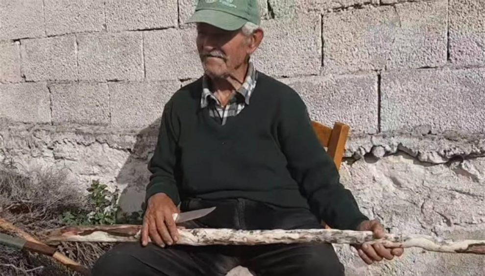 Σε βίντεο που δημοσιεύτηκε στη σελίδα του Facebook Δια-SOS-τε τη Μεσαρά ο 90χρονος Κωστής Φραγκιαδάκης ή Νταντουλόκωστας (πατέρας του γνωστού λαουτιέρη Ζαχάρη και άλλων τριών παιδιών), από τα Βορίζια που ζει με την σύζυγο του Μαρία στην Παναγιά Δήμου Φαιστού, μας δείχνει τον τρόπο κατασκευής ενός στυλιαριού από χαρουπιά, μπορεί να φτιαχτεί ωστόσο και από πρινόξυλο ή άγρια ελιά.