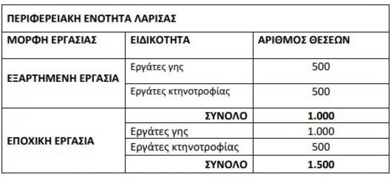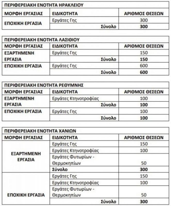 Έτσι, σύμφωνα με απόφαση των υπουργών Ανάπτυξης και Επενδύσεων, Εργασίας και Κοινωνικών Υποθέσεων, Εξωτερικών Μετανάστευσης και Ασύλου, Ναυτιλίας και Νησιωτικής Πολιτικής, Αγροτικής Ανάπτυξης και Τροφίμων, ανά Περιφέρεια και Περιφερειακή ενότητα, ο αριθμός καθορίζεται ως εξής: