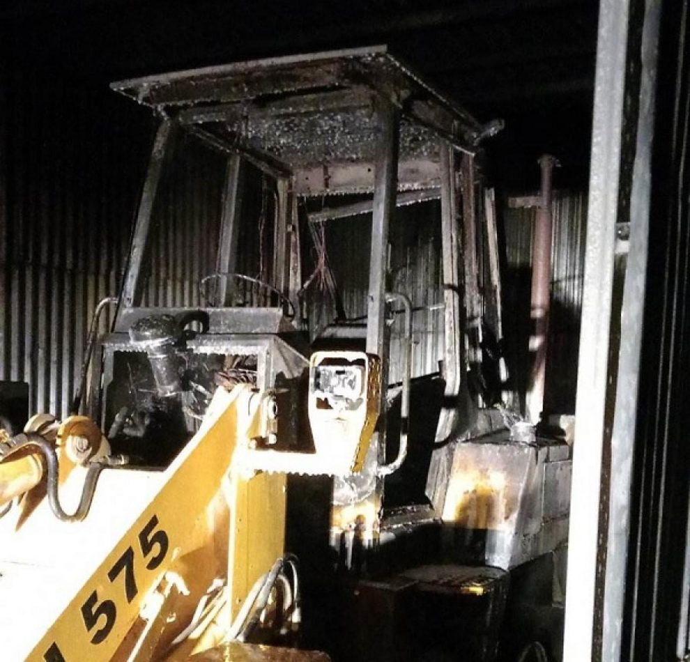 Στάχτες και αποκαΐδια έμειναν μετά από πυρκαγιά που ξέσπασε σε μηχάνημα έργου και συγκεκριμένα σε ένα φορτωτή, λίγο μετά τις 9 το βράδυ, χθες, Τρίτη 09 Μαΐου.