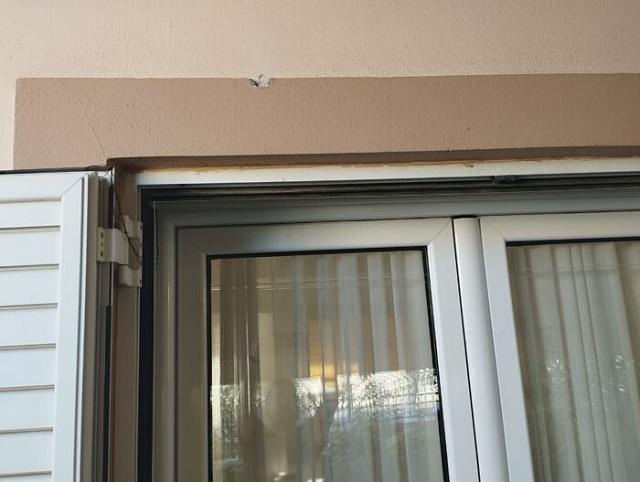 Όπως βλέπετε στις φωτογραφίες δύο σφαίρες τρύπησαν το κάτω μέρος της μπαλκονόπορτας και πέρασαν μέσα στο σαλόνι, με την πρώτη να τρυπάει το καλοριφέρ στον απέναντι τοίχο και την δεύτερη να χτυπάει το πόδι μιας καρέκλας. Η τρίτη σφαίρα χτύπησε τον σοβά πάνω από την μπαλκονόπορτα ενώ η τέταρτη χτύπησε τον τοίχο στον δεύτερο όροφο.