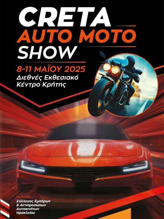 Από τις 8 έως τις 11 Μαΐου, το Διεθνές Εκθεσιακό Κέντρο Κρήτης στις Γούρνες Ηρακλείου, υποδέχεται την «CRETA AUTO MOTO SHOW» τη μεγαλύτερη εκθεσιακή γιορτή του Αυτοκινήτου και της Μοτοσυκλέτας, σηματοδοτώντας μια νέα εποχή για τον κλάδο στην ΚΡΗΤΗ.