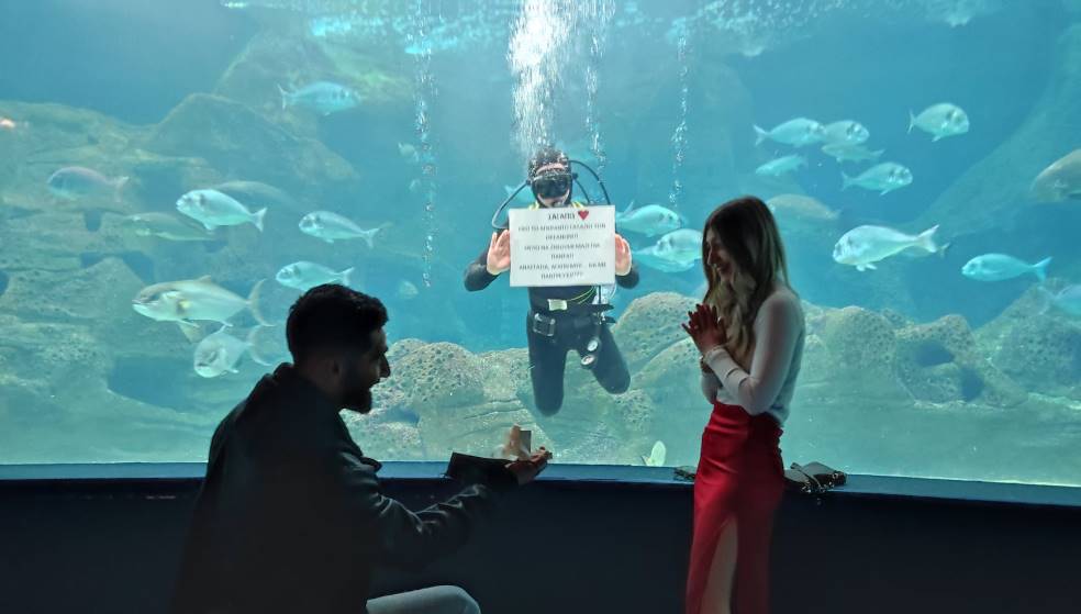 Ο κεντρικός αμυντικός του ΟΦΗ με την βοήθεια δύτη στο Ενυδρείο Κρήτης, «έστησε» την έκπληξη στην αγαπημένη του.