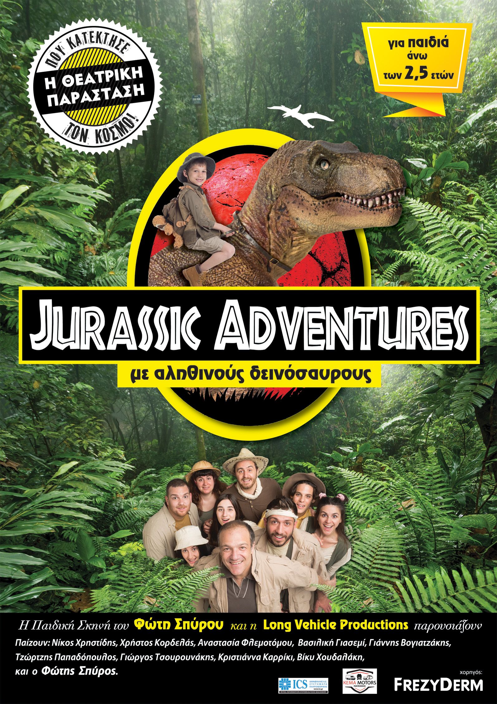 H θεατρική παράσταση JURASSIC ADVENTURES περιέχει τεράστιους Δεινόσαυρους 5,5 μέτρων. Η λεπτομερής κίνηση των δεινόσαυρων που τους κάνει να μοιάζουν αληθινοί συντελείται χάρη στο τελευταίας τεχνολογίας υδραυλοκίνητο σύστημα τους, καθώς και στον ειδικά εκπαιδευμένο performer που βρίσκεται στο εσωτερικό. Επίσης η παράσταση περιέχει special effects φωτισμού και για πρώτη φορά dolby surround σύστημα ήχου.