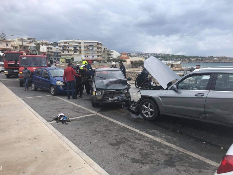 Όπως αναφέρει το goodnet.gr όλα συνέβησαν όταν τουρίστας οδηγός ενός οχήματος που κινούνταν από το Λιμάνι με κατεύθυνση προς την Σταμαθιουδάκη κάτω από αδιευκρίνιστες συνθήκες έχασε τον έλεγχο του οχήματος και προσέκρουσε πάνω σε δυο σταθμευμένα αυτοκίνητα και τέσσερα ακόμη τα οποία εκείνη την ώρα κινούνταν στον Περιφερειακό στο ύψος του ΚΤΕΛ.