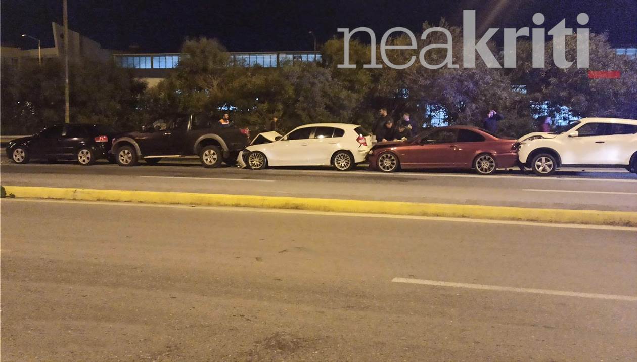 Έξι αυτοκίνητα συγκρούστηκαν στα φανάρια της Καλλιθέας στο Ηράκλειο, νωρίς το βράδυ.