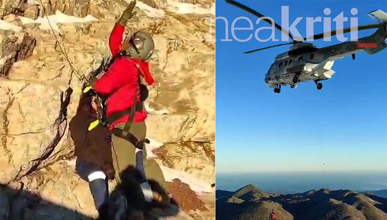 Στα βίντεο που δημοσιεύει το neakriti.gr αποτυπώνεται η στιγμή που το ελικόπτερο παραλαμβάνει τον 22χρονο.
