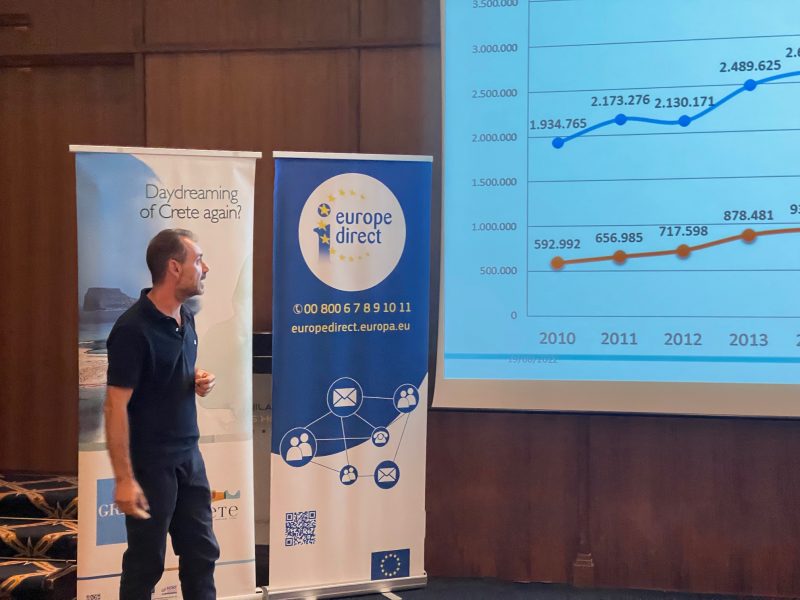 Ήταν μια ειδική ενημερωτική συνάντηση εργασίας, στη διάρκεια της οποίας ο προϊστάμενος τουρισμού της Περιφέρειας Κρήτης Νίκος Αλεξάκης, παρουσίασε την στρατηγική για τον τουρισμό, καθώς και στοιχεία που αφορούν τις πρωτοβουλίες και δράσεις της Περιφέρειας στην ανάδειξη και προβολή του νησιού, την επισκεψιμότητα και το προφίλ του τουρισμού και των υποδομών, αναδεικνύοντας τα πλεονεκτήματα που έχουν καταστήσει την Κρήτη κορυφαίο νησιωτικό προορισμό.