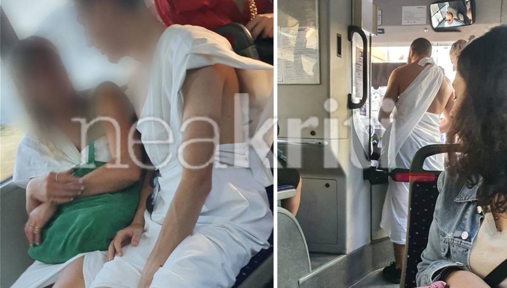 Ντύθηκαν αρχαίοι Έλληνες, μπήκαν στο λεωφορείο και μαγνήτισαν τα βλέμματα.