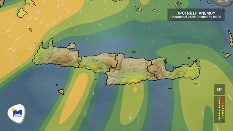 Ειδικότερα για την Κρήτη προβλέπονται λίγες νεφώσεις παροδικά αυξημένες στα βόρεια του νησιού