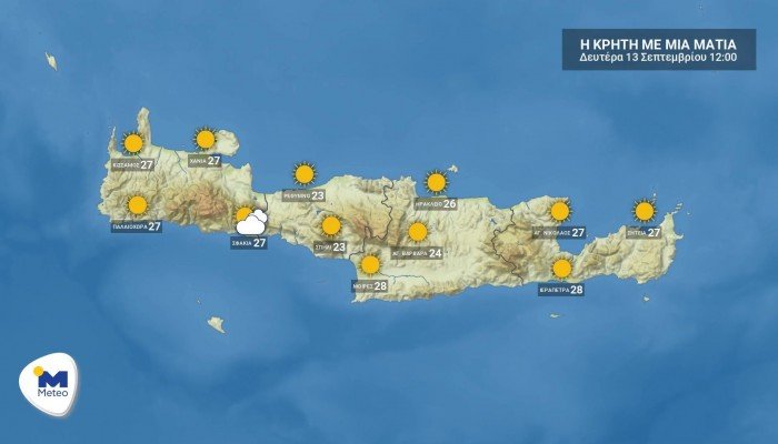 Η θερμοκρασία θα κυμανθεί από 19 έως 28 βαθμούς Κελσίου