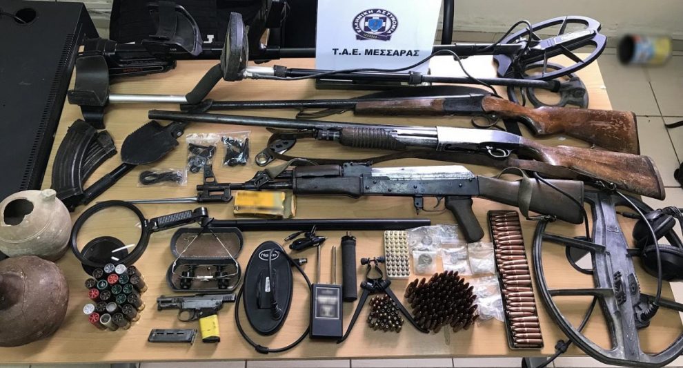 Συνελήφθη σήμερα (16.10.2021) το πρωί, στο Τσιφούτ Καστέλι του Δήμου Γόρτυνας, από αστυνομικούς του Τμήματος Αστυνομικών Επιχειρήσεων Μεσσαράς, ένας 37χρονος, κατηγορούμενος για παραβάσεις της νομοθεσίας περί προστασίας αρχαιοτήτων και εν γένει της πολιτιστικής κληρονομιάς και παραβάσεις της νομοθεσίας περί όπλων.