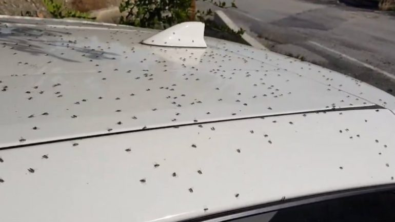 Στο video όπως αναφέρεται, δεν έχουν χρησιμοποιηθεί ειδικά εφέ, ούτε ψεκάστηκε το αυτοκίνητο με ουσία που προσελκύει τον δάκο…