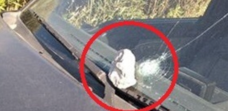 Μια, αρκετά μεγάλη, βρήκε το παρμπρίζ και το έσπασε.