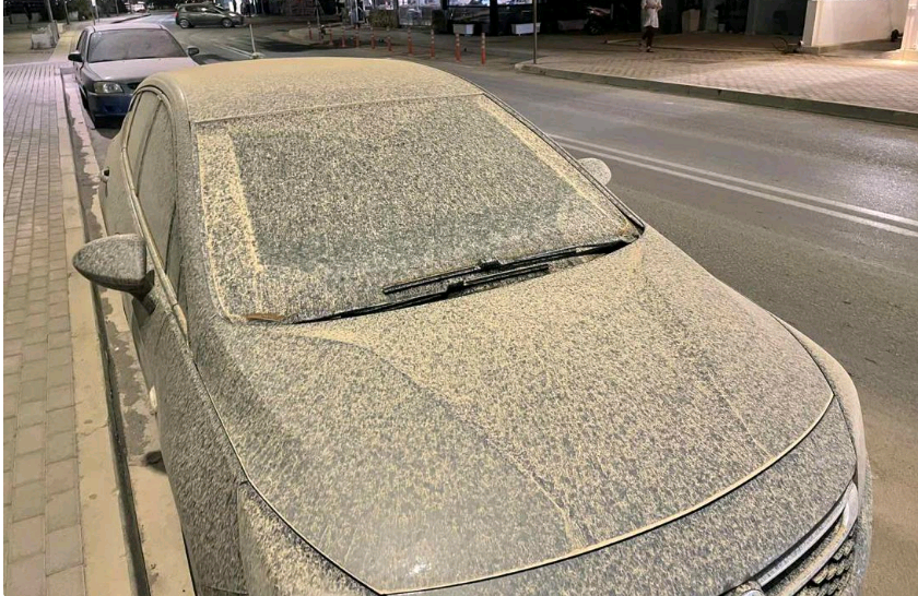 Αργότερα έριξε λίγη βροχή με αποτέλεσμα η λάσπη που δημιουργήθηκε να πέσει επάνω σε σπίτια αυτοκίνητα και δρόμους μεταρέποντας τα πάντα σε έναν “πορτοκαλί εφιάλτη”!