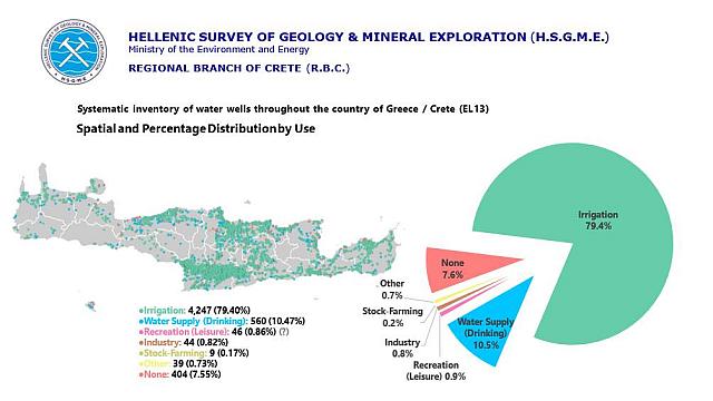 Το συντριπτικό ποσοστό και συγκεκριμένα το 79,4% των γεωτρήσεων χρησιμοποιείται για άρδευση.