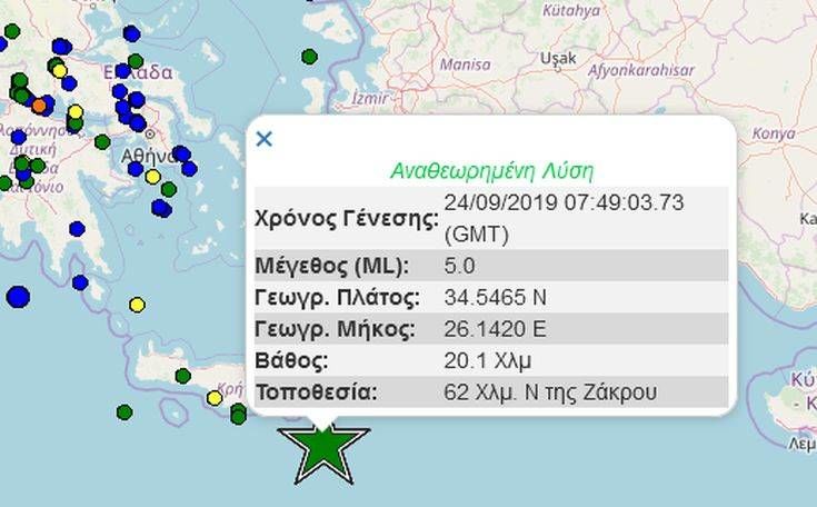 Σεισμός 5 Ρίχτερ σημειώθηκε το πρωί της Τρίτης ανοιχτά της Κρήτης, σύμφωνα με το Γεωδυναμικό Ινστιτούτο. Μέχρι στιγμής δεν έχουν αναφερθεί πληροφορίες για ζημιές.