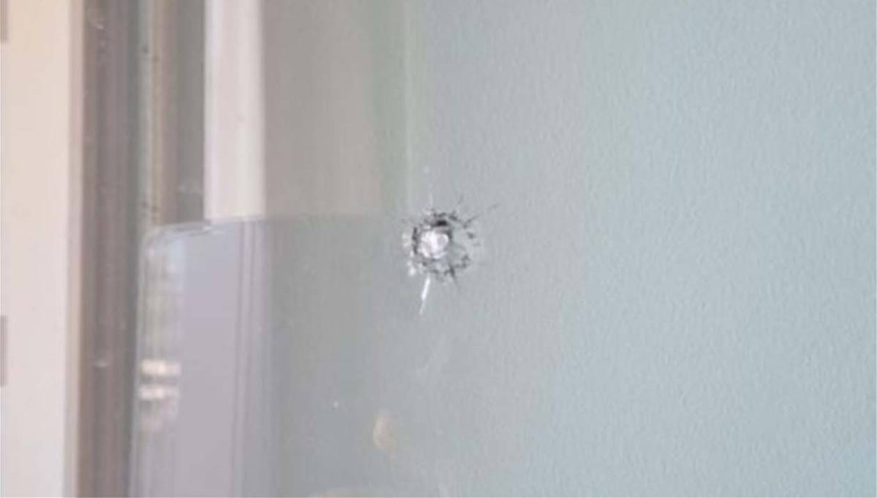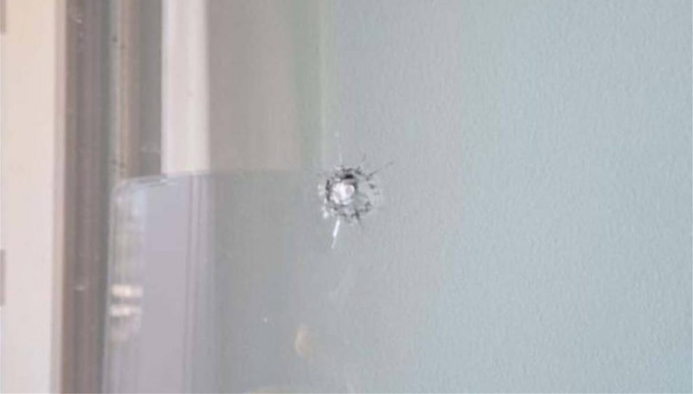 Όπως φαίνεται και στη φωτογραφία, η σφαίρα καρφώθηκε στο τζάμι και από τύχη δεν θρηνήσαμε θύματα.