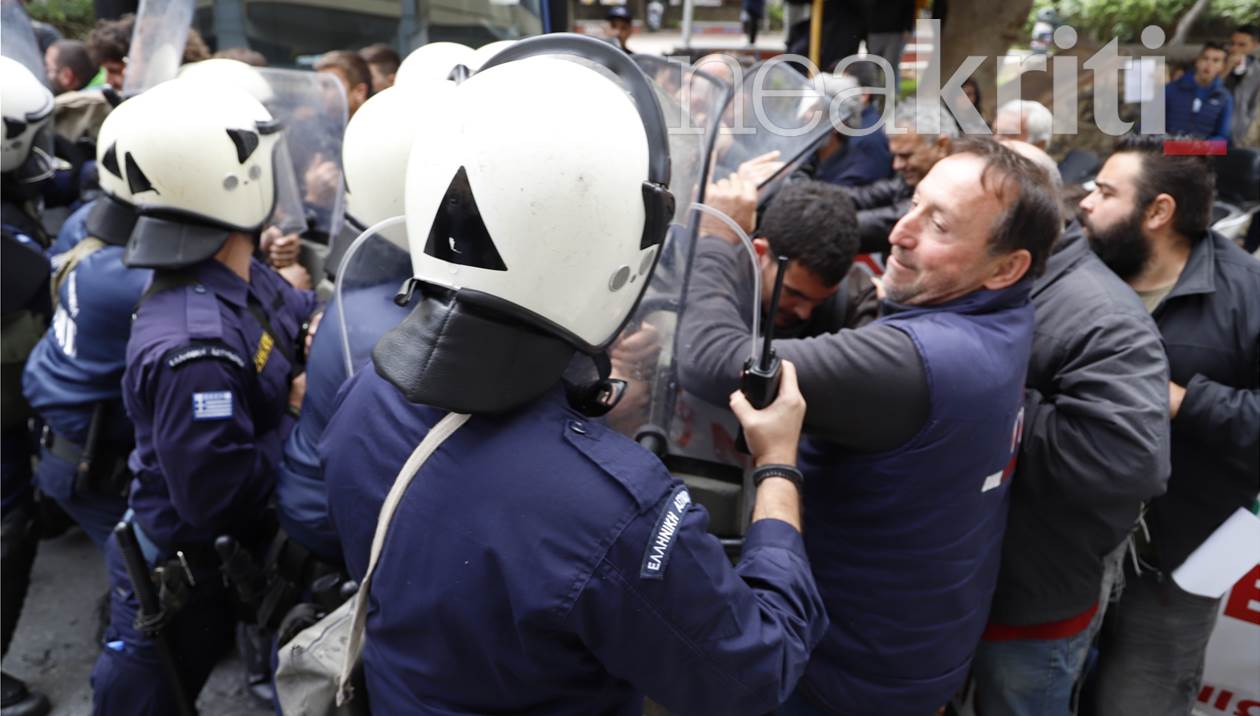 Επεισόδια ξέσπασαν το μεσημέρι της Πέμπτης στη διαμαρτυρία αγροτών έξω από το Επιμελητήριο Ηρακλείου. Οι διαμαρτυρόμενοι, μέλη της Πανελλαδικής επιτροπής μπλόκων προσπάθησαν να “σπάσουν” τον αστυνομικό κλοιό με αποτέλεσμα οι αστυνομικοί να επιχειρήσουν να τους απωθήσουν με κλομπ ,ενώ έγινε και ρίψη χημικών. Οι διαμαρτυρόμενοι θέλησαν να επιδώσουν ψήφισμα διαμαρτυρίας στον υπουργό Αγροτικής Ανάπτυξης που επισκέφθηκε το Ηράκλειο, γεγονός που δεν τους επετράπη.