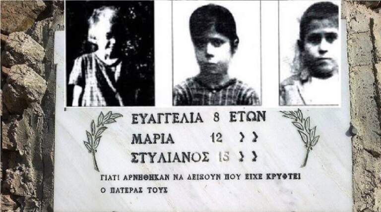 Είναι ένα από τα εγκλήματα των Γερμανών στη Βιάννο, τον Σεπτέμβρη του 1943. Από εκείνα που συγκλονίζουν και σήμερα, 78 χρόνια μετά. Τα 3 μικρά παιδιά της οικογένειας Βερβελάκη βασανίστηκαν και εκτελέστηκαν από τους Γερμανούς γιατί αρνήθηκαν να αποκαλύψουν πού κρυβόταν ο πατέρας τους, αν και γνώριζαν τη δική τους πορεία. Κι ήταν μόνο 3 παιδιά, από 8 μέχρι 15 χρόνων…