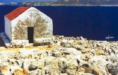 Το πλοίο σώθηκε και ο καπετάνιος που απέδωσε τη σωτηρία του στον άγιο της ημέρας, τον Αγ. Σώζοντα, εκπλήρωσε το τάμα του, κτίζοντας το μικρό εκκλησάκι στην άκρη της θάλασσα πάνω στους θαλασσοδαρμένους βράχους. Στο βόρειο άκρο, το μέτωπο του απότομου βράχου προς τη θάλασσα είναι σημαδεμένο με τρεις λευκούς σταυρούς, ορατούς ακόμα και σήμερα από τα διερχόμενα σκάφη, που σύμφωνα με την τοπική παράδοση έγιναν από τον διασωθέντα καπετάνιο.