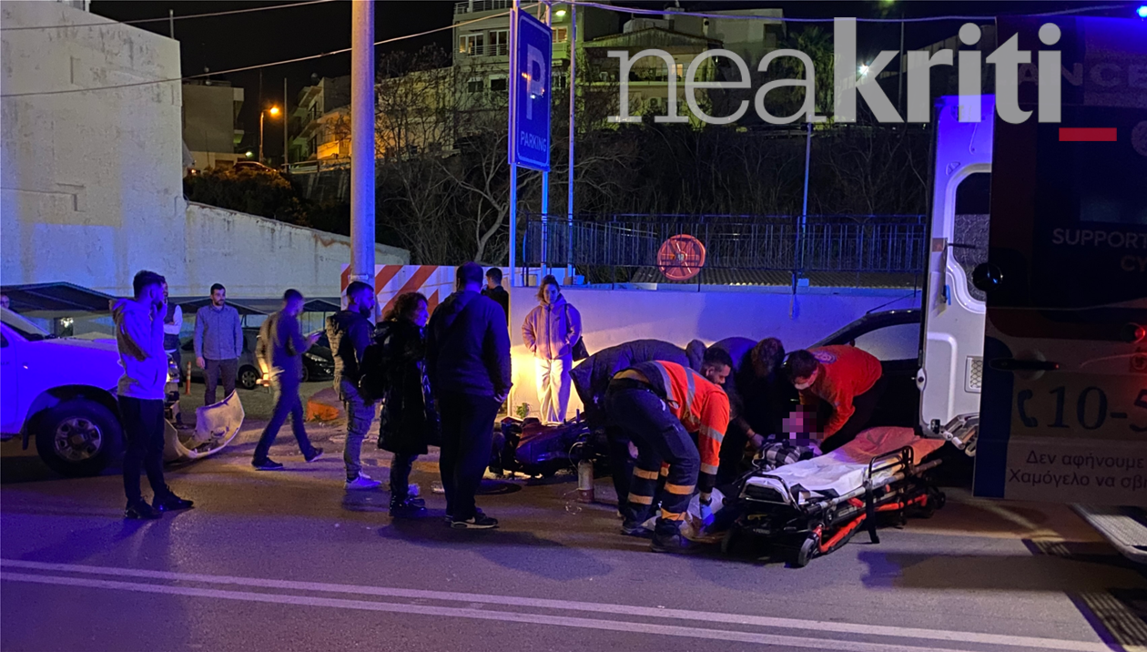 Σύμφωνα με πληροφορίες, το ατύχημα συνέβη λίγο μετά τις 22:00 στην λεωφόρο Ικάρου, στο ύψος της πλατείας Ελευθερίας, όταν ένα μηχανάκι συγκρούστηκε με λευκό αγροτικό όχημα, με αποτέλεσμα να τραυματιστεί μία 25χρονη κοπέλα στο πόδι.