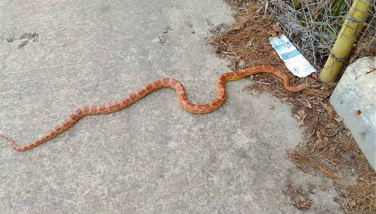 Μέλος της ομάδας των «ΜετεωΚρητών», ωστόσο, βρήκε και φωτογράφισε ένα είδος φιδιού που ομολογουμένως δεν είναι πολύ γνωστό, καθώς όπως λέει το φέρνουν απ’ έξω. Πρόκειται για το λεγόμενο «φίδι καλαμποκιού», που είναι κατοικίδιο και εντελώς ακίνδυνο για τον άνθρωπο.