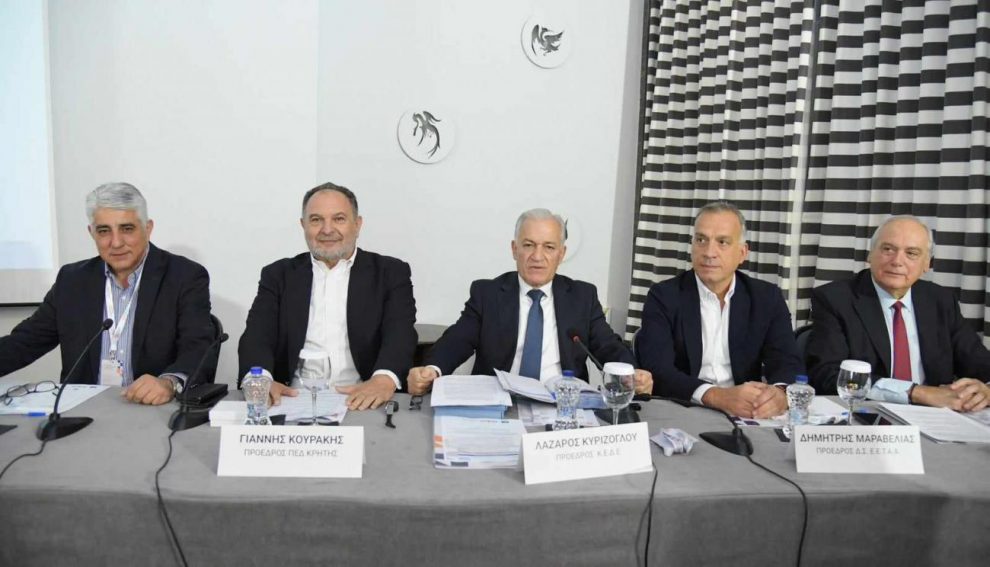 (Ο πρόεδρος της ΠΕΔ Κρήτης Γιάννης Κουράκης με τον πρόεδρο της ΚΕΔΕ Λάζαρο Κυρίζογλου)