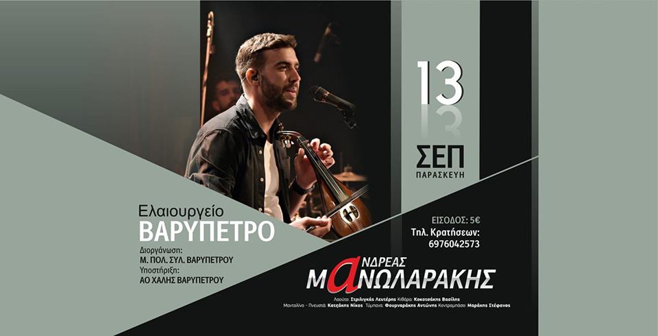 Κρητική βραδιά με τον Ανδρέα Μανωλαράκη στον Βαρύπετρο