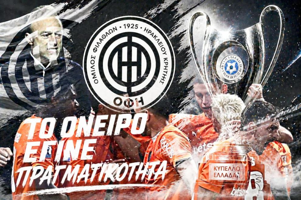 Μετά από μία συγκλονιστική εμφάνιση και παρά το γεγονός ότι βρέθηκε στο 15ο λεπτό πίσω στο σκορ και ισοφαρίστηκε στις καθυστερήσεις 2-2 ο ΟΦΗ κατόρθωσε τελικά στην παράταση με εύστοχο χτύπημα πέναλτι του Ισέκα στο 105′ και κατέκτησε το φετινό Κύπελλο Ελλάδας, για δεύτερη φορά στην ιστορία του (η προηγούμενη ήταν το 1987).