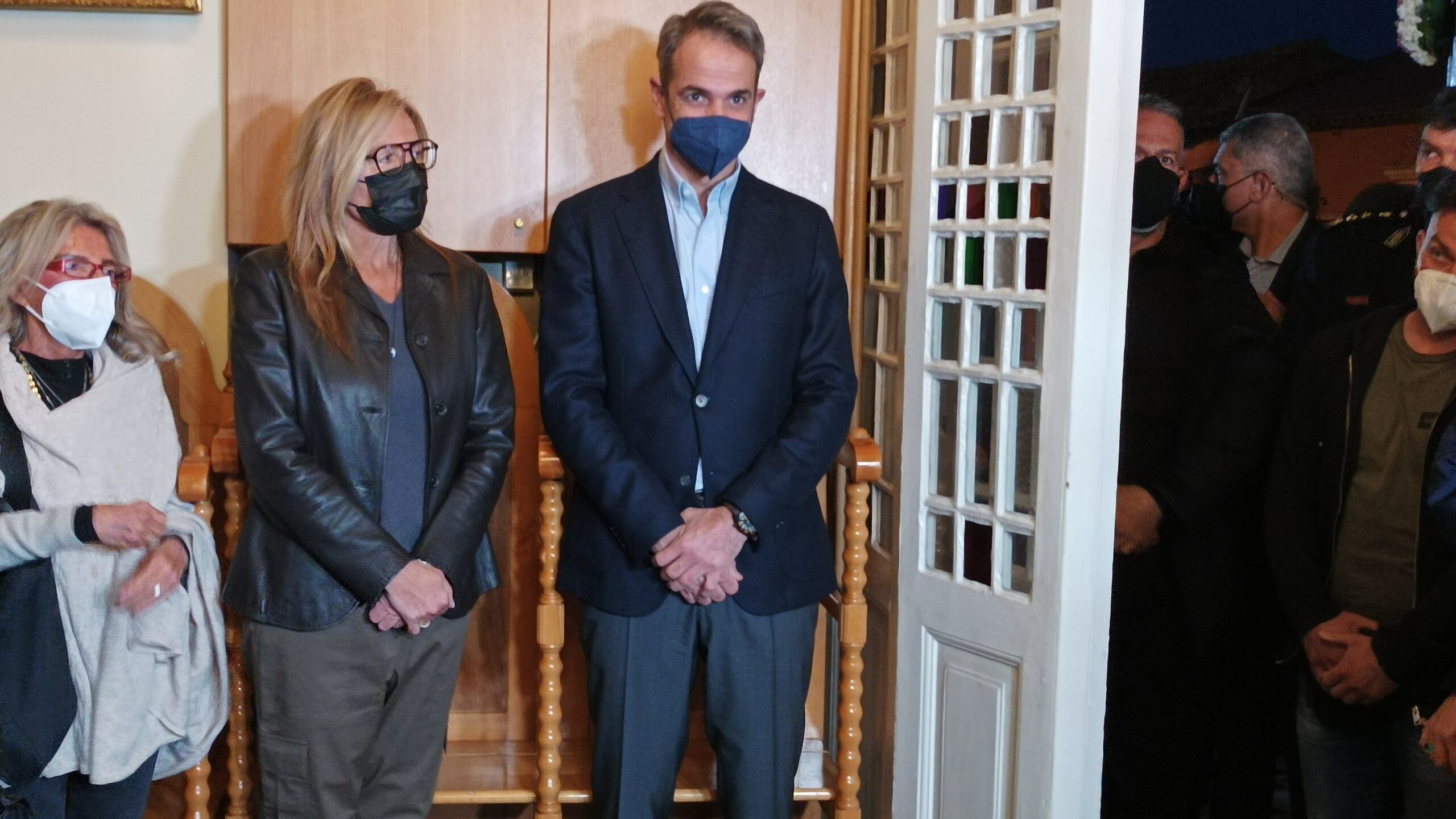Δίπλα στον πρωθυπουργό, πέραν της συζύγου του, η Ντόρα Μπακογιάννη όπως και η Κατερίνα Μητσοτάκη με τις οικογένειές τους.
