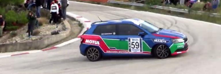 Ένα αγωνιστικό αυτοκίνητο έφυγε από τον δρόμο και χτύπησε στις μεταλλικές μπαριέρες, χάρις στις οποίες σώθηκαν οι θεατές.