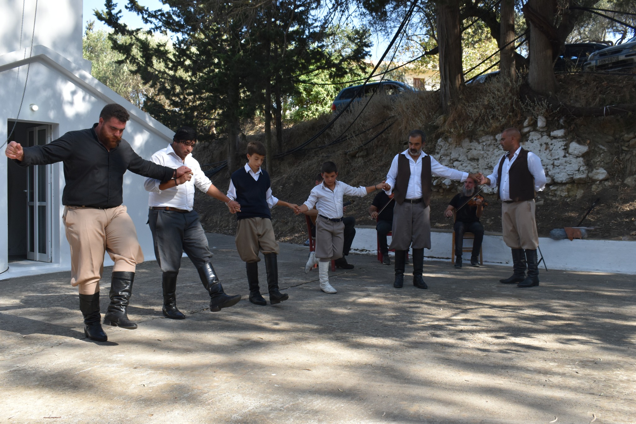 Το μεσημέρι της πρώτης ημέρας της δράσης (Παρασκευή, 6/9/24) πραγματοποιήθηκε στον αύλειο χώρο του παλαιού ιερού ναού της Παναγίας στα Ζαχαριανά Λουσακιών η πρώτη μουσικοχορευτική συνάντηση. Σε αυτήν συμμετείχαν λουσακιανοί χορευτές – μικροί και μεγάλοι – υπό τη μουσική συνοδεία των ρουματιανών μουσικών Μάρκο Ρενιέρη, Μιχάλη Λουφαρδάκη και Σπύρο Παναγιωτάκη. Το δρώμενο παρακολούθησαν δεκάδες Λουσακιανοί χωριανοί, εκπρόσωποι τοπικών φορέων αλλά και άλλοι επισκέπτες.