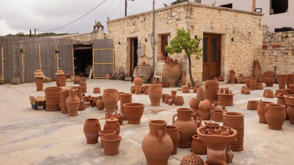 Ο Μάρκος είναι από τους λίγους τεχνίτες που ξέρει να πλάθει τα μινωικά πιθάρια με τις χαρακτηριστικές τρεις λαβές, και που τα φτιάχνει με χώμα δικό του, που έχει βγάλει ο ίδιος από το αόρι. Αγγεία σε διάφορα μεγέθη, μεγάλα πάντα, προορίζονται όπως είπαμε για αποθήκευση του ελαιολάδου, αλλά και των χαρουπιών, του αλευριού ή ό,τι καρπού έβγαζε ο καθένας, και έκλειναν από πάνω με ένα κεραμικό πούμα, ένα πώμα. Για τα μικρότερα σκεύη χρησιμοποιεί χώμα ιταλικό ή μαρουσιώτικο. Ξέρει επίσης να αξιοποιεί τα σπασίδια, τα άψητα ρετάλια άλλων εργαστηρίων. Τα κάνει σκόνη, τα ανακατεύει με άλλα μείγματα και τα αξιοποιεί ξανά σε συγκεκριμένα αγγεία. Αναζητά παλιά μινωικά και κυκλαδικά αγγεία, παρατηρεί τα κεραμικά είδη που έχουν βρεθεί σε αρχαία ναυάγια, φτιάχνει τα μείγματά του, κάθεται στον τροχό και τα πλάθει.